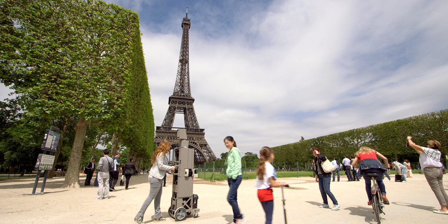 스트리트 뷰 이미지를 촬영하기 위해 Google 지도 팀은 연간 7백만 명의 방문객처럼 직접 에펠탑의 수많은 층을 올랐습니다. 기념물과 박물관을 위해 특별히 설계된 스트리트 뷰 트롤리를 사용하여 에펠탑의 구조와 파리의 탁 트인 전망을 360도 이미지로 수집했습니다.