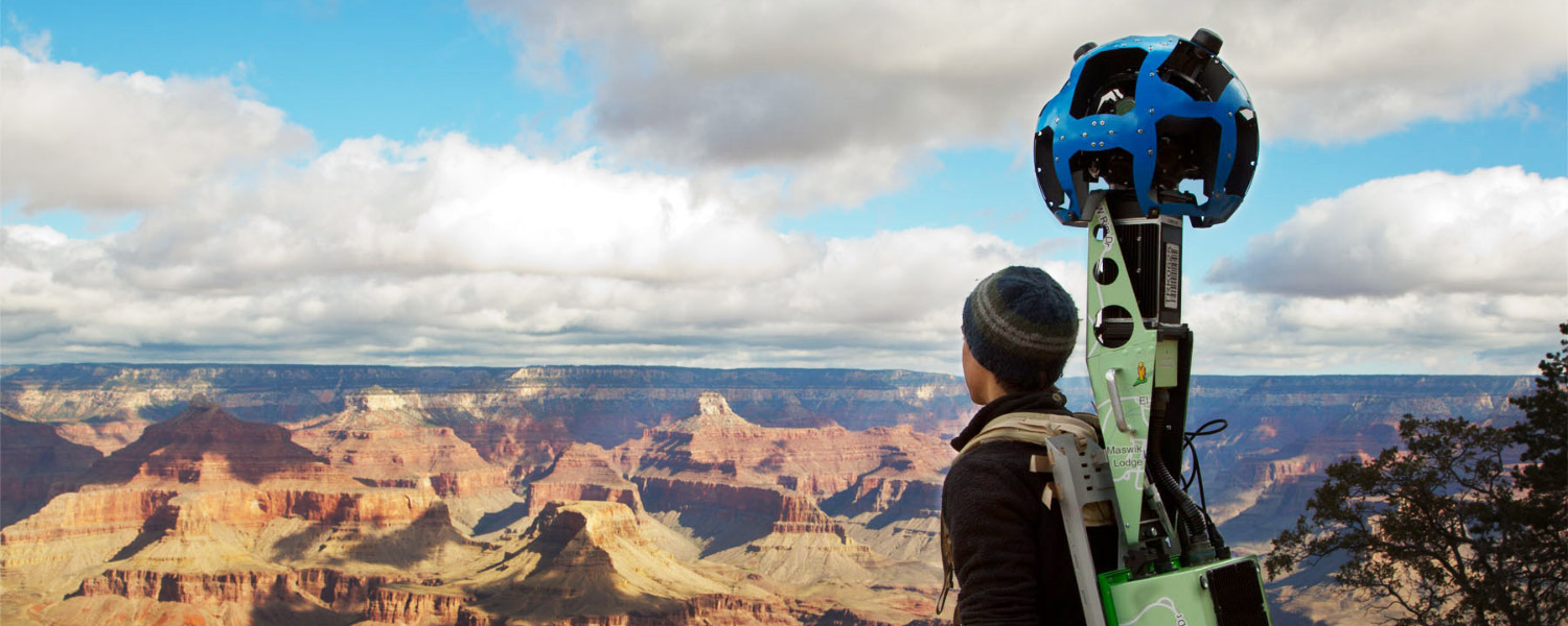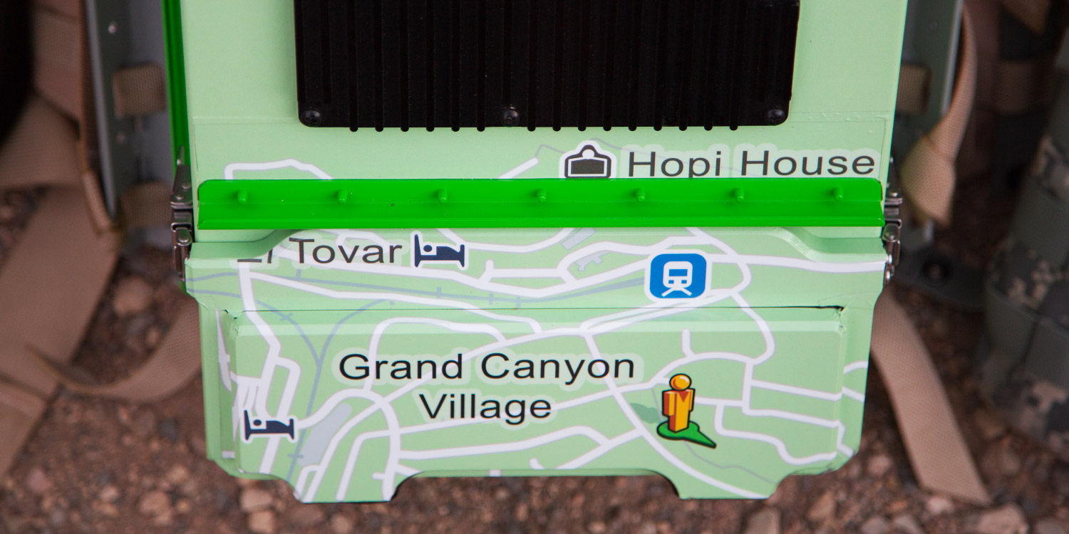 그랜드 캐년의 거친 지형과 능선 및 가파른 트레일은 트레커의 기능을 활용하기에 완벽한 환경입니다. 기존의 스트리트 뷰 자동차, 세발자전거 및 트롤리로는 좁은 트레일로 이동할 수 없지만 트레커 배낭을 착용하고는 쉽게 이동할 수 있습니다. 트레커는 크기가 작아서 거추장스럽지 않고 이동이 간편하며 이동하는 동안 이미지를 자동으로 수집합니다. 트레커는 Android 기기로 작동하고 마스트의 상단에 이미지를 연결하여 360도 파노라마 뷰를 만들 수 있도록 각기 다른 방향으로 각도가 설정된 15개의 렌즈로 구성되어 있습니다.