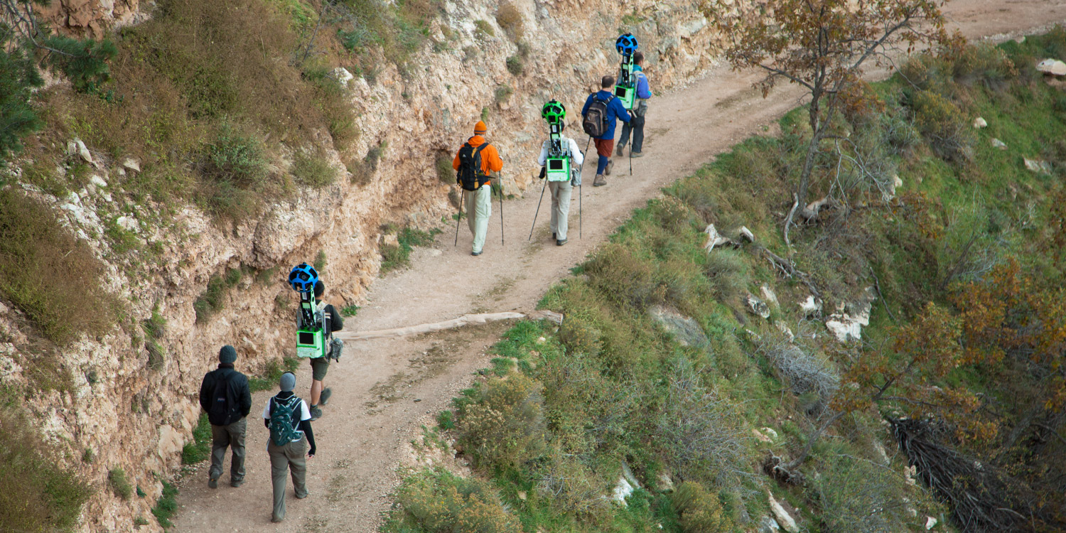 그랜드 캐년 사우스 림의 주요 트레일을 촬영하기까지 10명의 Google 직원이 5대의 트레커를 이용하여 꼬박 3일이 걸렸습니다. 두 트레커 팀은 브라이트 엔젤 트레일을 걸어 내려와 팬텀 랜치에서 하룻밤을 야영하고 다음날 사우스 케이밥 트레일을 따라 걸어 나왔습니다. 다른 세 트레커 팀은 그랜드 캐년의 정상에 남아 림 주위와 사우스 림 트레일의 이미지를 촬영했습니다. Google 팀은 그랜드 캐년 국립공원 바로 밖에 있는 미티어 크레이터의 이미지도 수집했습니다.
